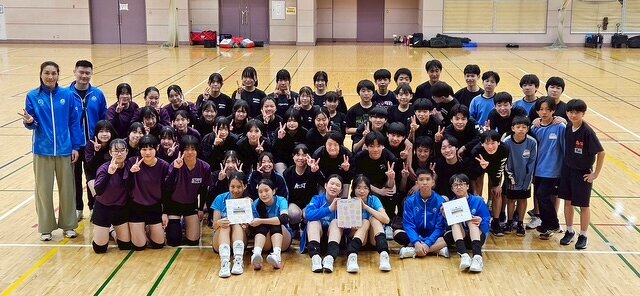 4月4日(土)~5日(日)甲斐市敷島体育館において、飛玥バレーボールアカデミー香港とのスポーツ(バレーボール)を通した交流を行いました。交流したのは、飛玥バレーボールアカデミー香港チーム(元中国ナショナルチームで活躍されていた孫 玥(ソン ゲツ)さんがコーチをしています)と甲斐市立敷島中学校男子バレーボール部、敷島中学校・竜王中学校女子バレーボール部、甲府市立城南中学校女子バレーボール部、笛吹市立一宮中学校・春日居中学校男子バレーボール部、笛吹市立御坂中学校男子バレーボール部のみなさんでした。国際情勢は混とんとしていますが、この交流を通して、多文化共生への理解につなげ、互いを尊重し、協力しながら世界や社会をつくりあげていくことの大切さを学んでほしいと計画しました。2日間、バレーボールを通して、互いを尊重し合いながら、素晴らしい交流となりました。